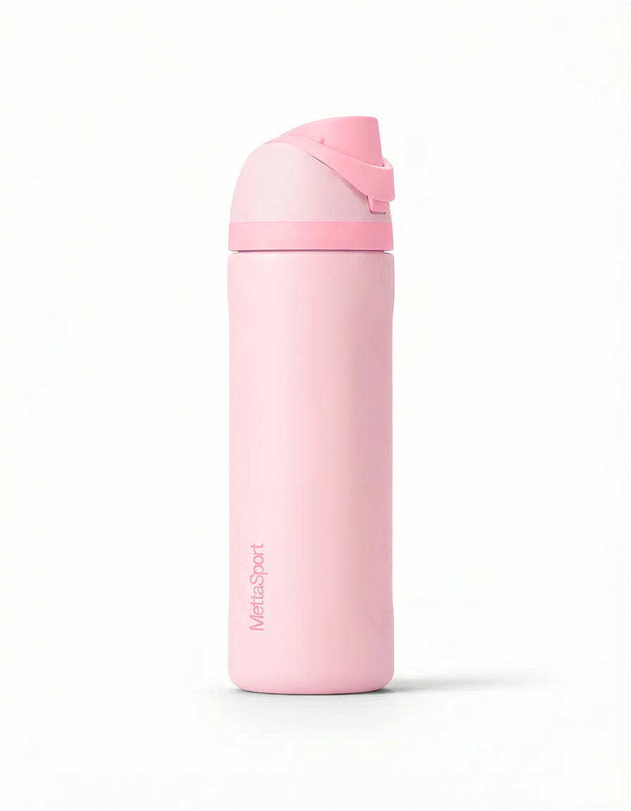 Brúsinn er úr ryðfríu stáli og rúmar 710ml. Hann er hannaður með innbyggðu röri sem auðveldar drykkju, og er með þægilegu handfangi ásamt loki sem opnast með takka. Hann heldur drykknum köldum í langan tíma og er án BPA og blýs, sem gerir hann bæði öruggan og umhverfisvænan í daglegri notkun.