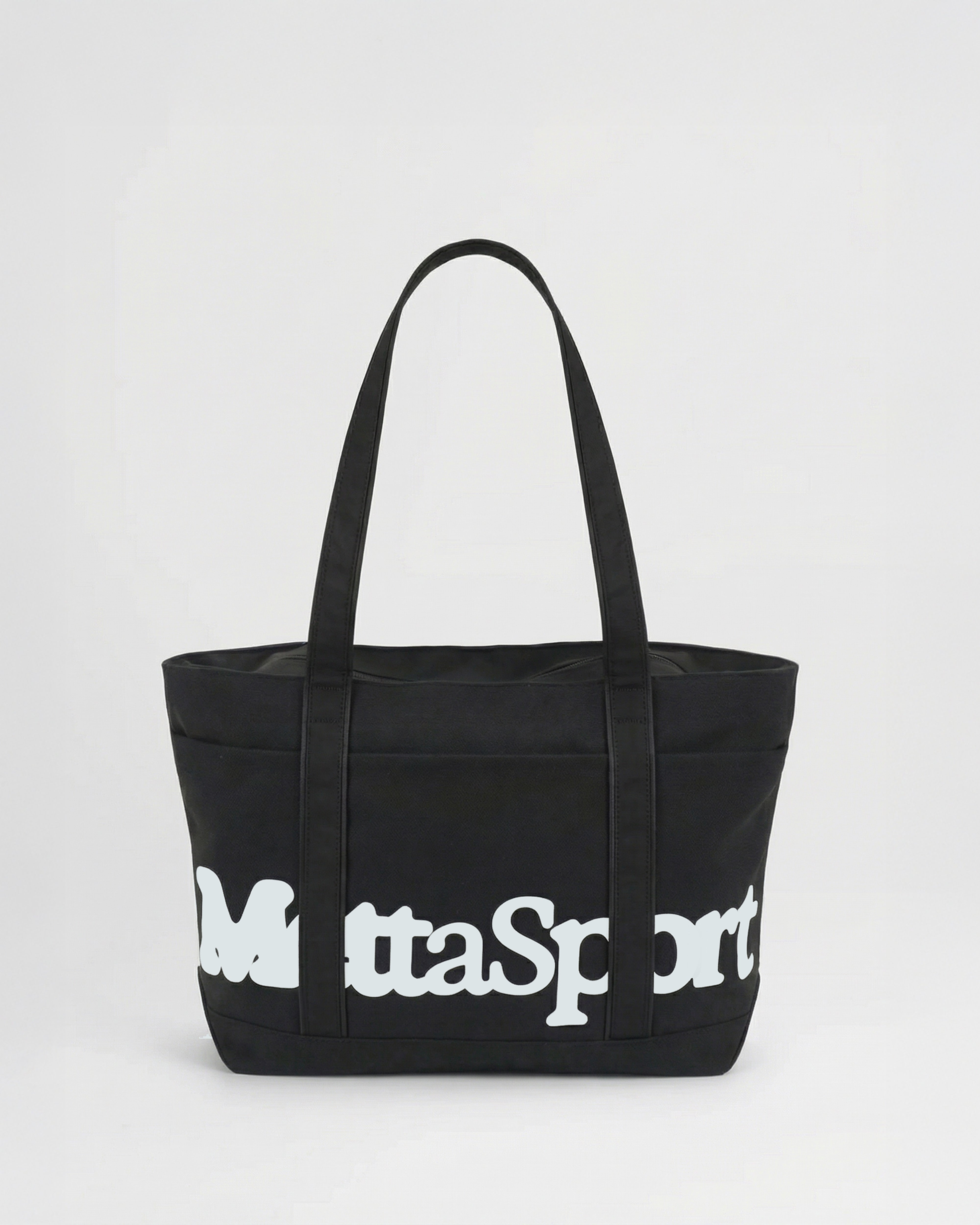 Metta Stencil Tote Bag er fullkominn í skólann, æfinguna eða sund. Pokanum er hægt að loka með rennilás og er með renndum vasa innan í fyrir smáhluti.