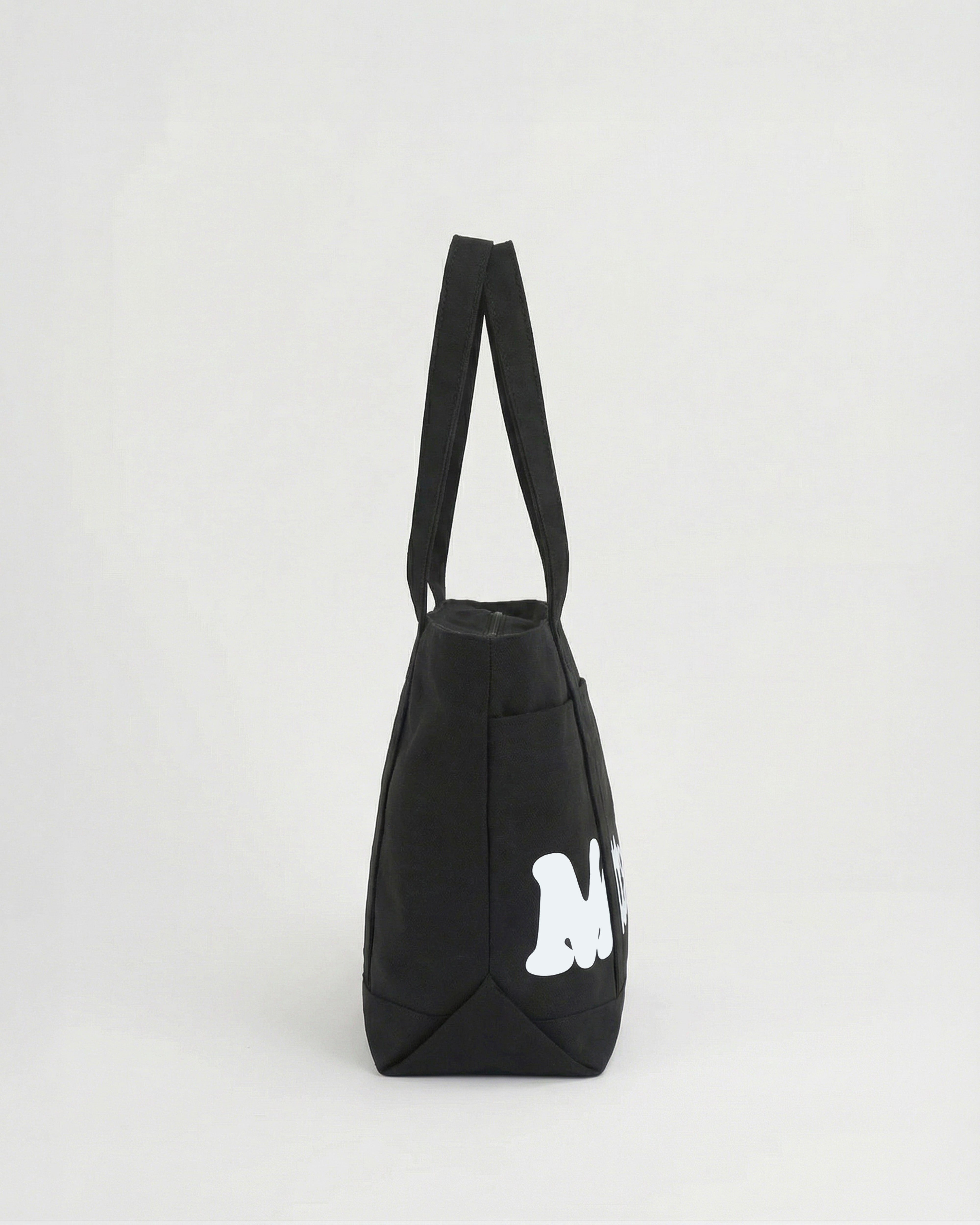 Metta Stencil Tote Bag er fullkominn í skólann, æfinguna eða sund. Pokanum er hægt að loka með rennilás og er með renndum vasa innan í fyrir smáhluti.