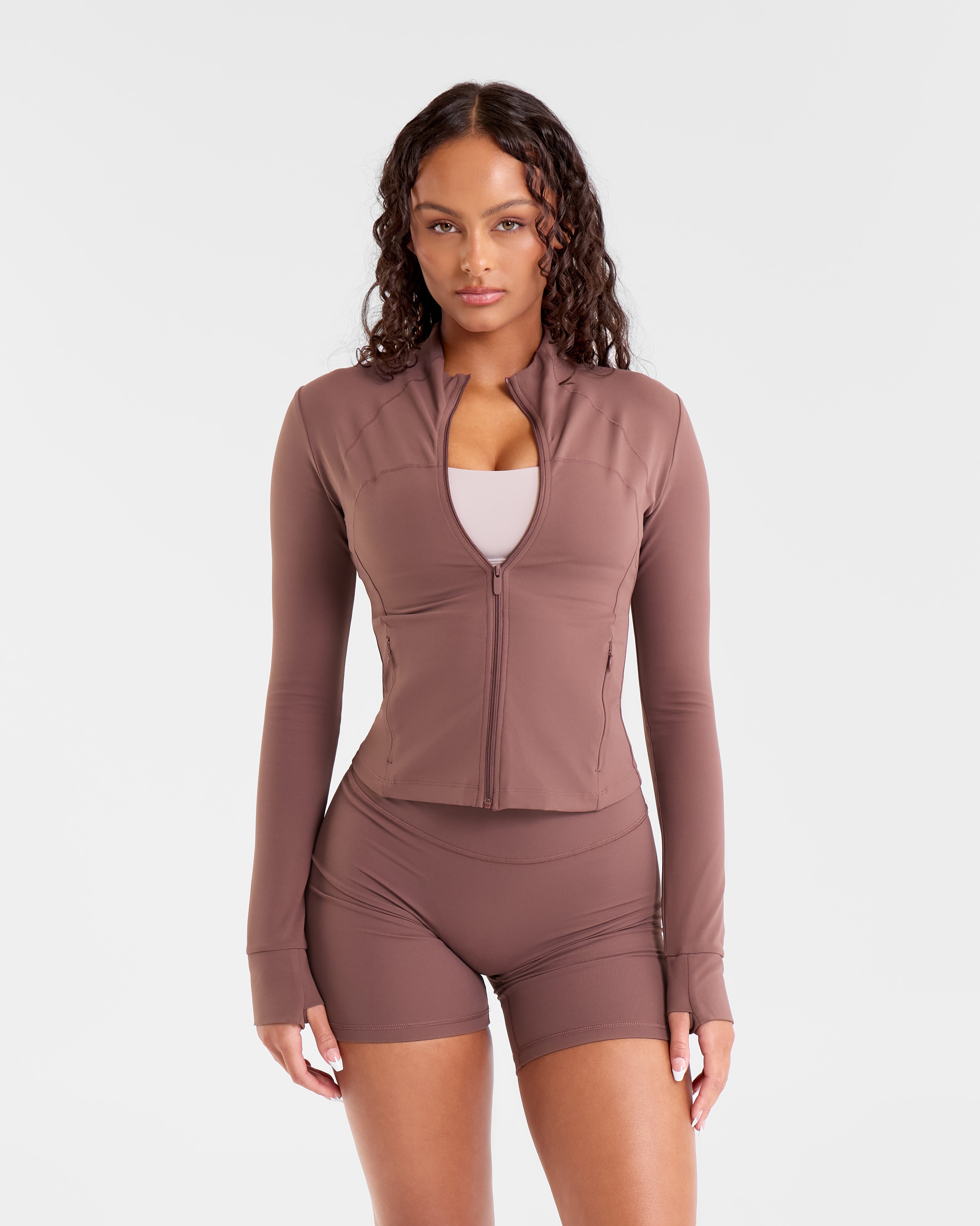 Uppfærð útgáfa af vinsælasta jakkanum okkar, nú úr nýju efni sem andar vel og dregur í sig raka og svita. Hann er aðeins styttri en upprunalegi jakkinn, sem gefur léttara og sportlegra snið. Hentar bæði í æfingar og hversdags, með þægilegu sniði og miðlungs stuðningi sem mótast vel að líkamanum.